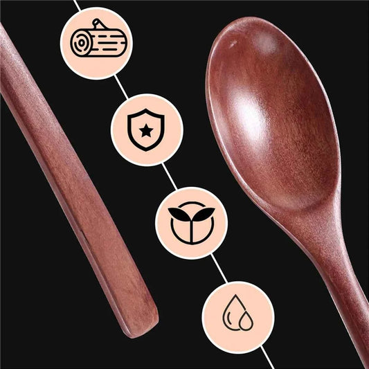 Cuilleres bois teck - Assiette et set de cuisine en bois naturel pour riz et soupes